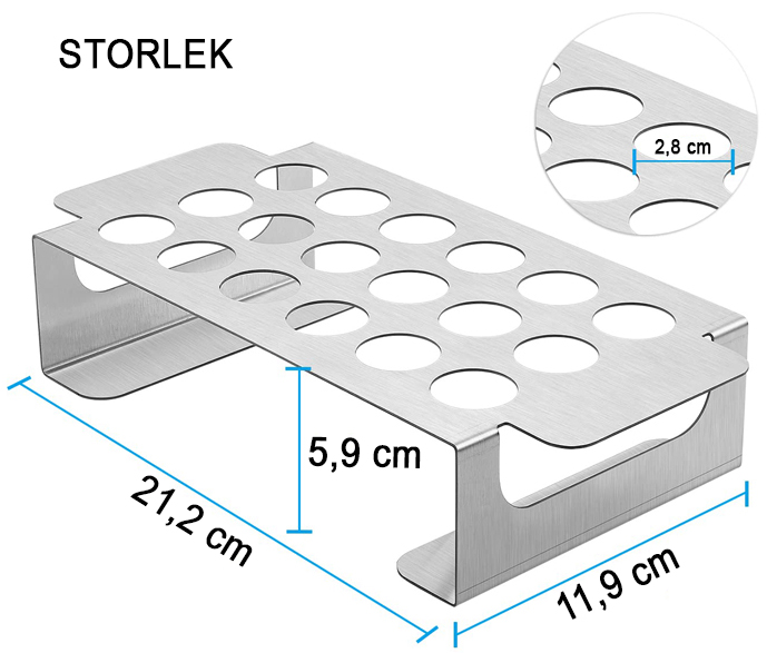 Stället har hela 18 hål som passar till kycklingben, större chilifrukter, snackpaprikor, broccoli och liknande.